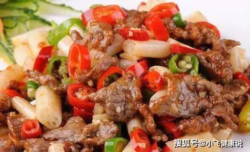 食材:裡脊牛肉、小藕、紅椒、青椒、泡椒、澱粉、鹽、香油、醬油、油、大蒜、生抽、蚝油
