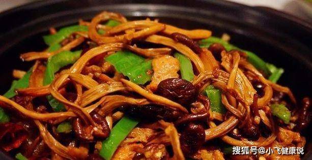 4.然後放入茶樹菇、鹽翻炒,茶樹菇時間要炒得稍微久一些,茶樹菇是泡發的,內部含有水分,要把水分炒干。