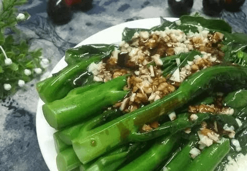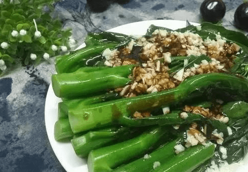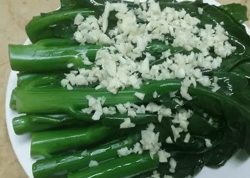 芥藍200克、油適量、耗油兩勺、蒜蓉適量