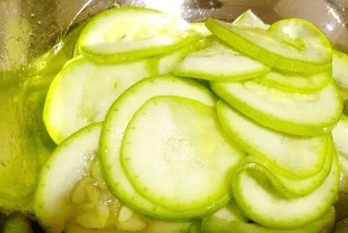 3.鍋中燒開水,放入西葫蘆,焯水後馬上撈出過涼水
