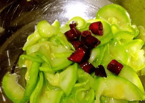 西葫蘆半個或1個、干辣椒2個、鹽適量、雞精少許、白糖少許、食用油適量