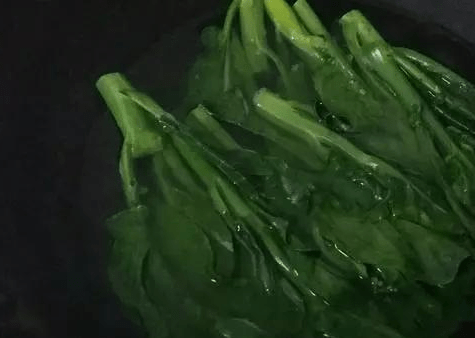 3.等鍋里水開了把芥藍放入鍋中撈一下