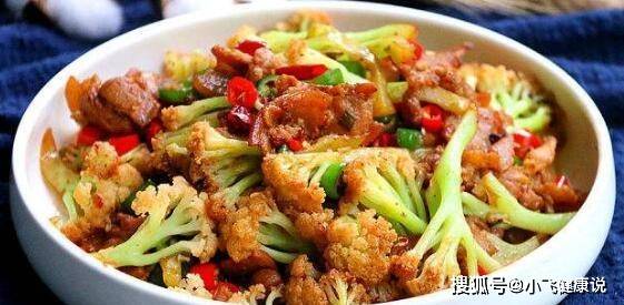 1、五花肉切片,花菜洗淨切開小朵,然後焯水撈出備用,辣椒切長段,大蒜切片。