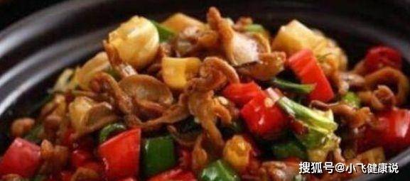3、鍋熱倒油,倒入醃好的雞胗翻炒;炒制雞胗變色,連湯和雞胗一起盛出;