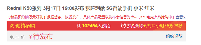 而另一方面,在蘋果春季發布會剛剛結束以後,國產廠商紅米也正式宣布了K50的發布時間,將會在3月17日正式發布。與此同時,各大電商平台上也都預約上架了紅米K50手機,目前所有用戶都可以預約。