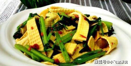 1.西芹洗淨,切段。千張沖洗一下,切寬條,用熱水焯一下,瀝淨水份備用