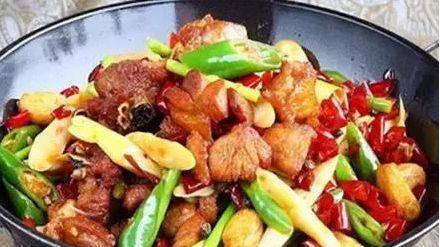 4.鍋里留油,下姜蒜、花椒爆香,再放入大蔥和尖椒翻炒