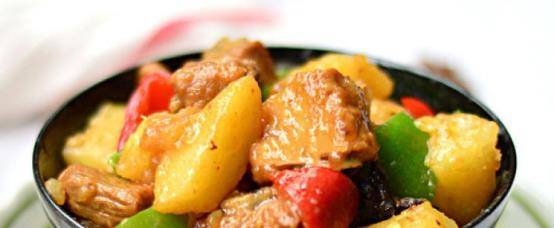 食材:排骨,土豆,青紅椒,姜蒜,八角,生抽,老抽,料酒,蚝油,鹽