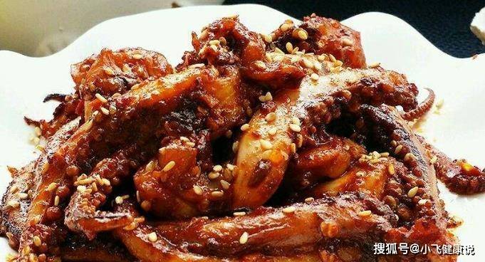 食材:魷魚須,甜面醬,料酒,蔥薑末,孜然,味精,雞精,鹽糖少許,食用油