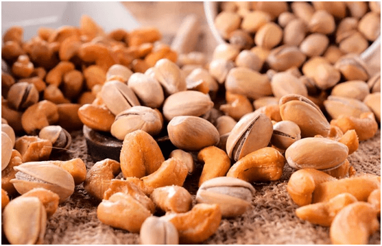 堅果含有豐富的蛋白質、維生素和礦物質,能夠改善記憶力下降和身體乏力的症狀,保護心腦血管,但它含有大量油脂,吃太多容易發胖,建議每天食用一湯匙的量,而且上午吃比較好,不要晚餐後吃。