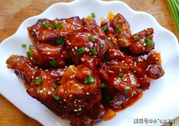 食材:肋排、薑片、蔥、料酒、色拉油、老抽、生抽、白砂糖、白芝麻