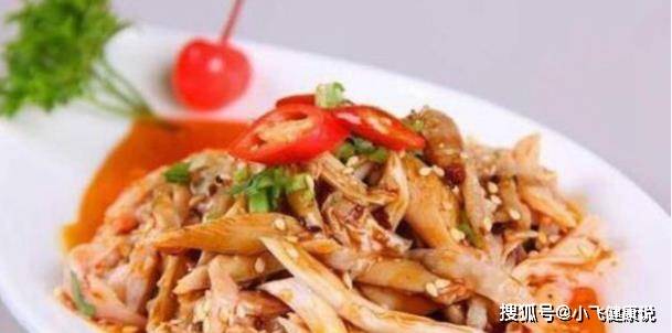 1.雞胸肉洗淨放在清水中,加入花椒,薑片,料酒煮熟,用手撕成細絲,碼入盤中。