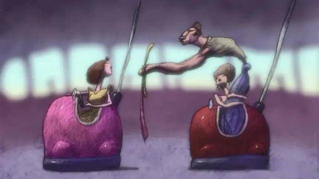 游樂園里,美女女主被騙去玩碰碰車,看到場上玩的人不僅有一眾小屁孩,還有頭發花白的老太,以及擠在一輛車里的情侶。