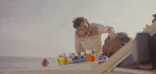 這一段也很好笑,女孩穿著泳裝在泳池裡邀請大傻一起。