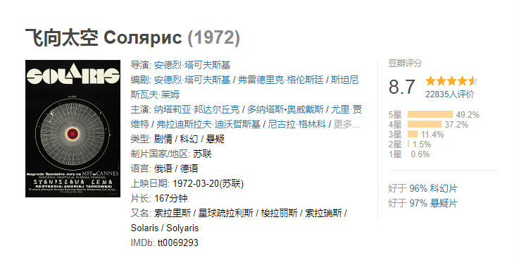 而關於索拉里斯星的設定,十分獨特新穎,即使電影已經上映了五十年,依然充滿了意外之喜。