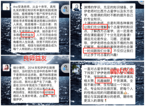 得益於 大學老師媒體人的身份,她傳授的知識,比很多星座咨詢師,更能夠用更加 通俗易懂的方式,讓學員和客戶聽得懂,用得上。