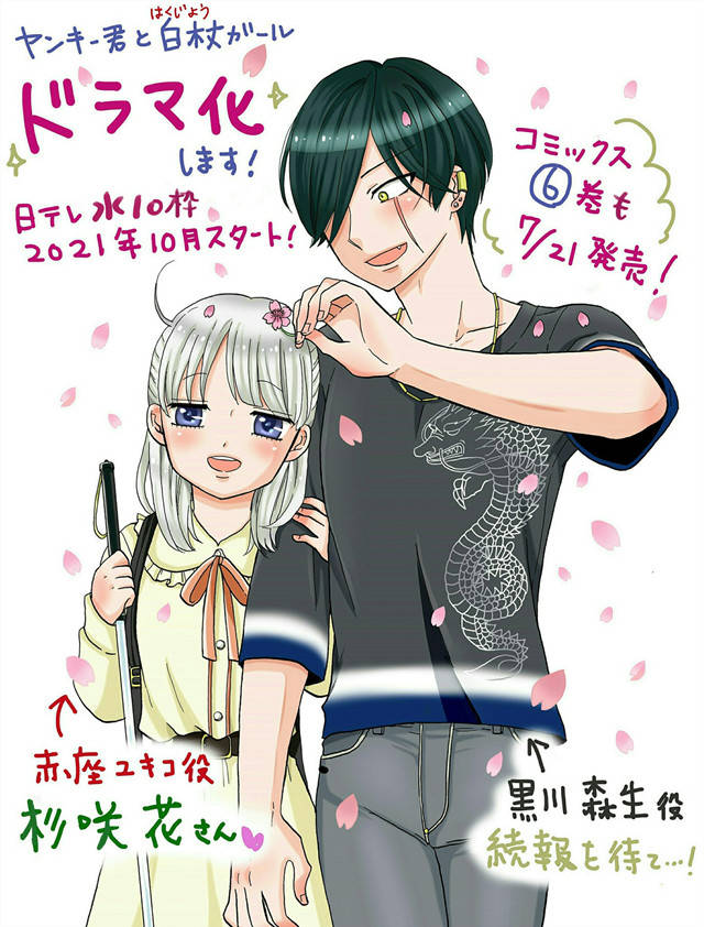 うおやま創作的愛情漫畫作品《不良少年與白手杖女孩》,由杉咲花主演,是她在繼《小女侍》之後首次主演日劇,也是第一次主演日本台劇集,挑戰新世代愛情喜劇。將於今年10月份開始播出。另外,漫畫原作者還公布了其繪制的日劇化賀圖。