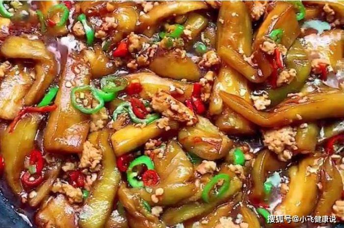 4.熱鍋熱油,下肉末翻炒斷生後放入蔥姜蒜青紅椒翻炒均勻,再加入蒸好的茄子翻炒均勻。