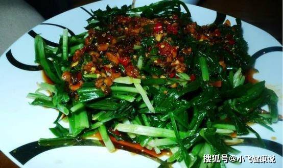 3.放涼後將韭菜的頭部打成結,放入盤中