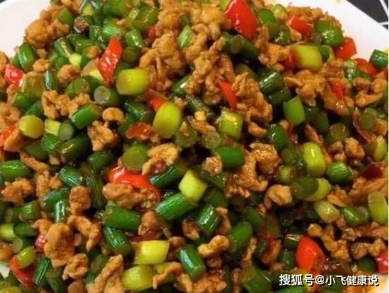2.起鍋燒油放入肉沫炒至變色,放入蔥姜蒜炒出香味,下入蒜薹加入鹽,雞精,十三香,醬油,耗油,白糖,小火炒熟放入小米椒,翻炒均勻即可出鍋裝盤