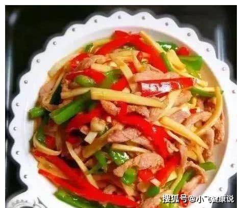 4、待肉絲變色,茭白扒拉回來,青椒紅椒入鍋,一同大火快手炒