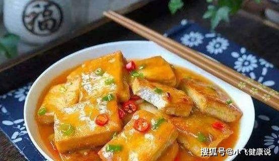 3、鍋中放入油,將豆腐下鍋,煎至一面金黃後,翻邊煎另一面即可。待兩面金黃時,加入調好的碗汁,煎至香味溢出後,淋入適量麻油,加入蔥花即可食用。
