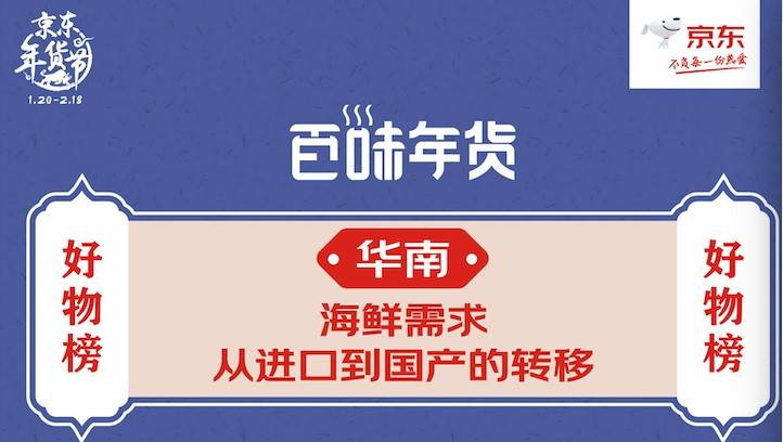 近日,京東生鮮推出了「百味年貨」榜單,華南地區TOP5全部都被國產海鮮產品占據,看來和小編一樣「志同道合」的夥伴還不少呀,今年過年華南地區的海鮮或許就是大家爭相搶購的商品了。