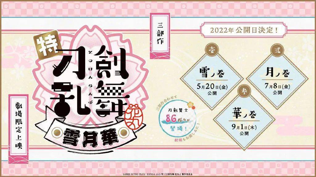 雪之卷5月20日,月之卷7月8日,花之卷9月1日。