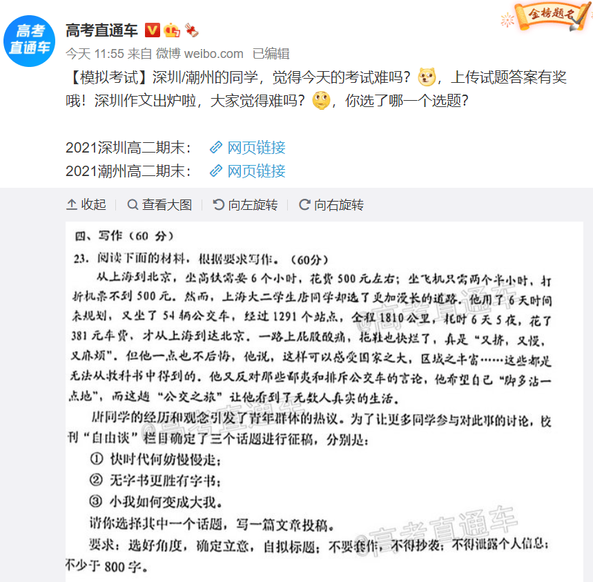 總之,事後UP主符騰堡公爵(又名石立太一、太子、唐同學、唐淺政明)的事跡,成為了深圳高中統考的作文的考題。試題中三個觀點一個比一個宏大,我估計太子自己看了都不知道該怎麼寫。