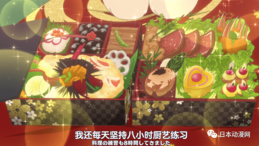 還沒等男主驚訝完,她又說考慮到要想抓住男人的心,就先要抓住男主的胃,因此她就利用這段時間拚命打工,攢下了一筆錢買了各種高級的食材,練就一番非常高超的廚藝,給男主做了十分豪華的便當。在說出自己所做准備的同時,她已經將這份豪華的便當拿出來給男主吃了,男主也確實為這個便當的材料和味道所折服。