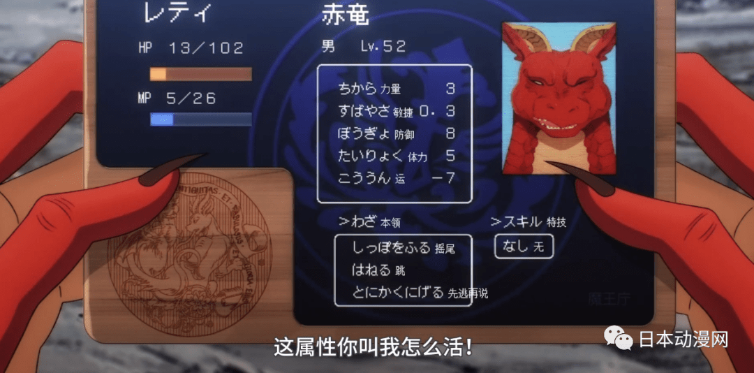 以上這些形容的都會一些十分常見的龍族,主角本身雖然是一條龍,卻是一條相當「沒用」的龍,可能是因為先天運氣不好,主角在出生的時候就和其他龍表現得很不一樣,它的各項屬性都非常低,戰鬥力和防禦力比一般的魔物還要低不少,運氣值也是低的嚇人。更加令人意想不到的是,身為龍的主角居然還沒有飛翔這個技能,龍本該有的東西它基本都沒有,空有一副龍的皮囊。