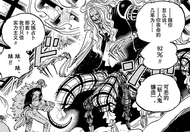 其他戰場中,雷藏VS福祿壽,忍者之間的對決。基拉VS霍金斯,霍金斯耍了個心眼,將稻草人替身連接到基德身上,雙方同生共死了。這里有點奇怪,因為基德和羅應該在打BIG MOM,所以霍金斯應該是連接基拉吧。具體怎麼樣,等到漫畫出來就知道了。