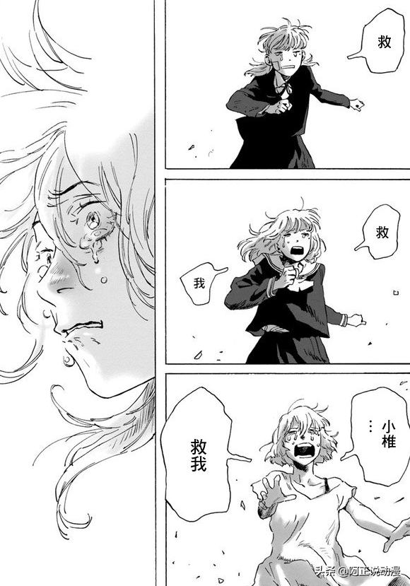 就拿小椎拿著骨灰盒哭泣的一段來說,漫畫依次表現了小椎強忍淚水地哭、無奈自嘲地哭、被突如其來的回憶打斷哭泣等幾個階段。