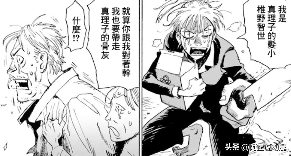 只見小椎飛速奪過骨灰盒,一手舉著刀氣勢洶洶告訴真理子的父親和繼母,自己今天非帶走骨灰盒不可。