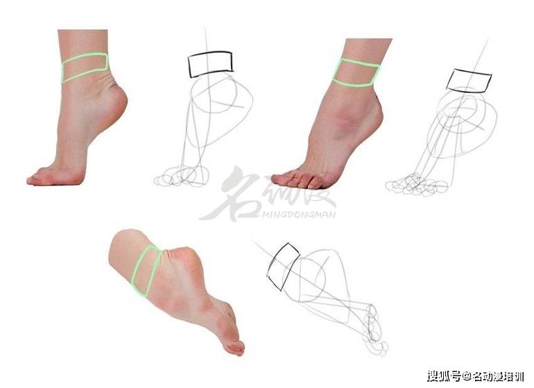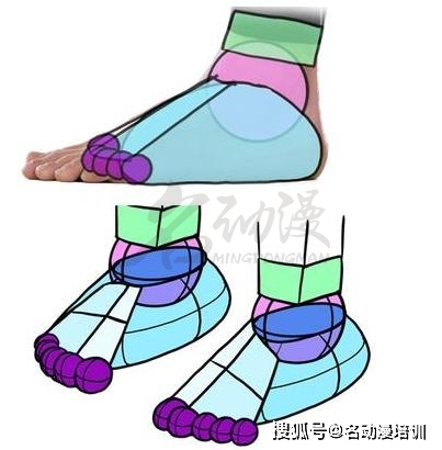 腳的透視結構應該也是很多同學為難的地方,這里我們從腳的3D結構入手給大家展示一下。