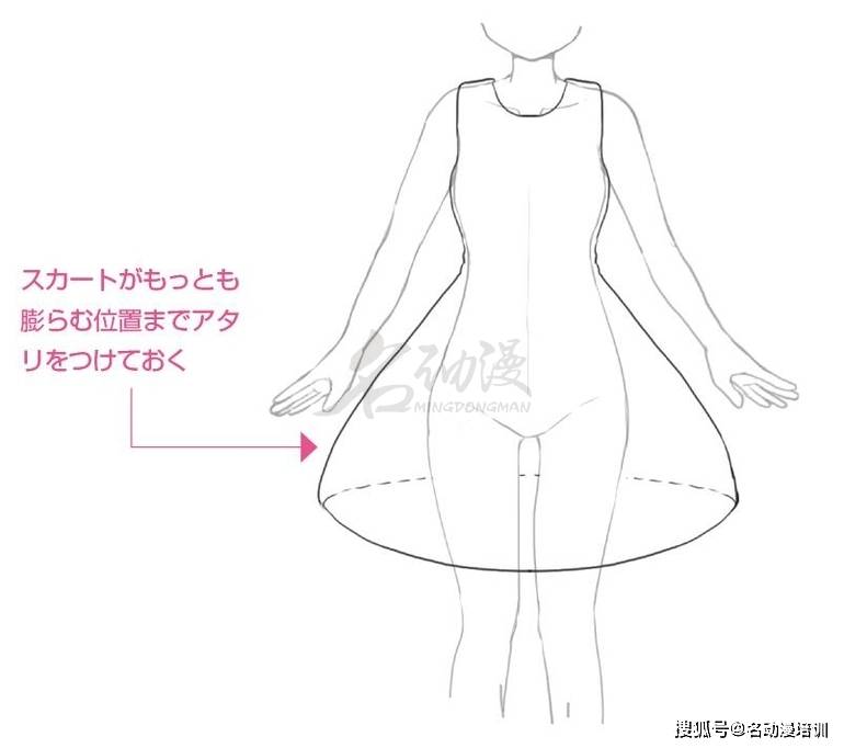 (1)畫出人體與禮服的輪廓草稿。同時還要畫出人體的中心線,具體裙子的參考和之前說洛麗塔服飾的畫法一樣,可以多去參考穿普通裙子的一些照片。