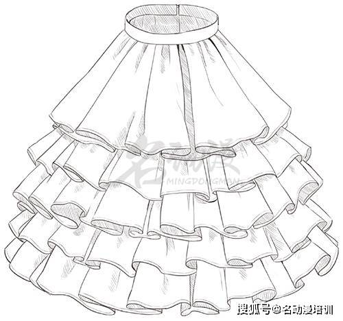 (2)多層百褶裙:有數層重疊褶皺的裙子,像中世紀禮服一樣有非常寬大厚重。