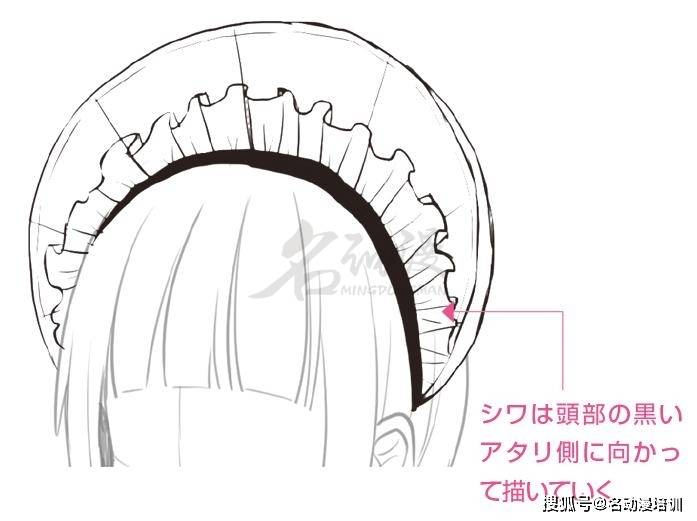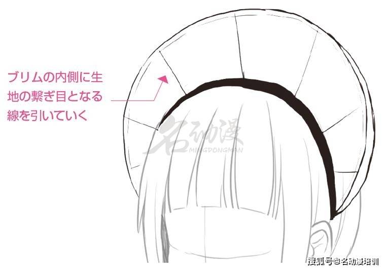 (3)以放射狀的褶皺為基礎,在帽檐邊緣加上褶邊的效果。注意褶皺是從縫的邊緣位置出來的,而不是自己長出來的。
