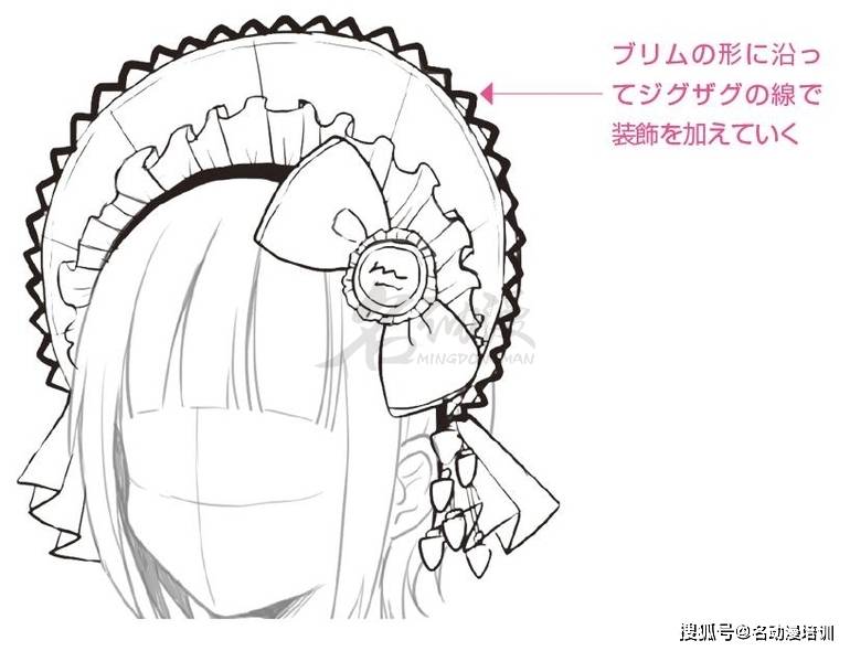 (5)加入更多點綴效果的裝飾細節。比如帽檐的邊緣鋸齒,還有頭上的緞帶,耳邊懸掛的飾品。