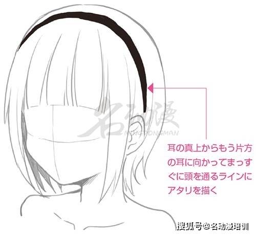 (1)先畫出頭部的草稿,同時在你想要戴上頭飾的位置上畫出像發箍一樣結構的線。