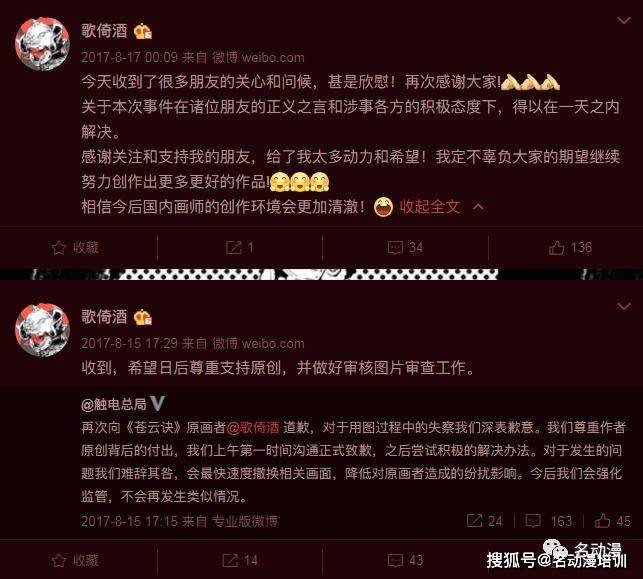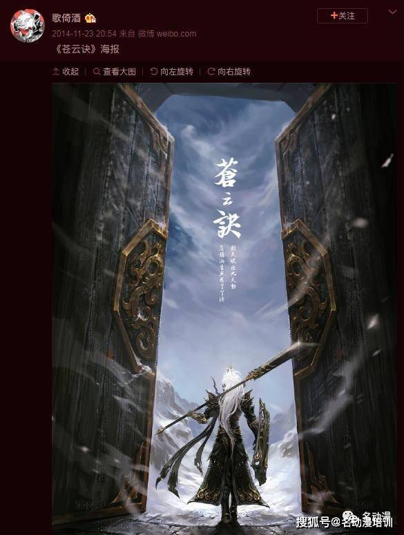 但是很快,就有眼尖的玩家發現,這張圖的構圖和元素,抄襲了大佬歌倚酒14年設計的《蒼雲訣》海報: