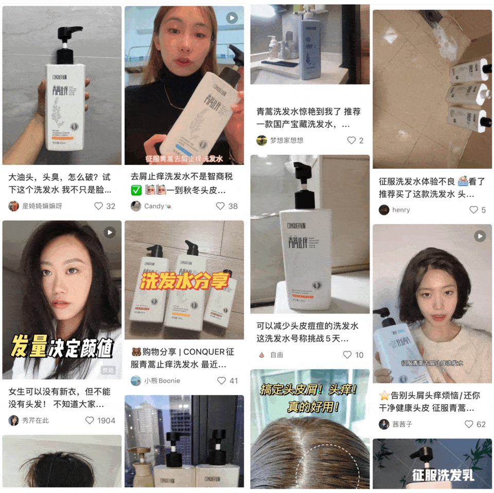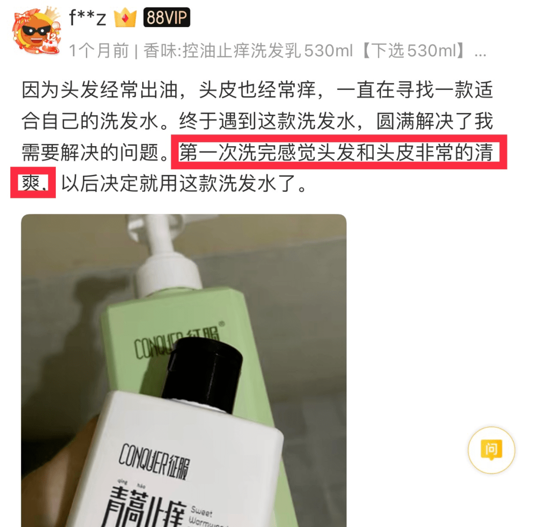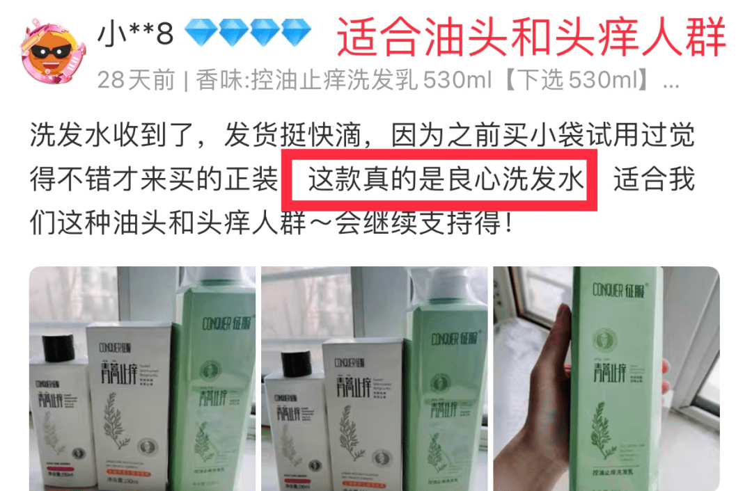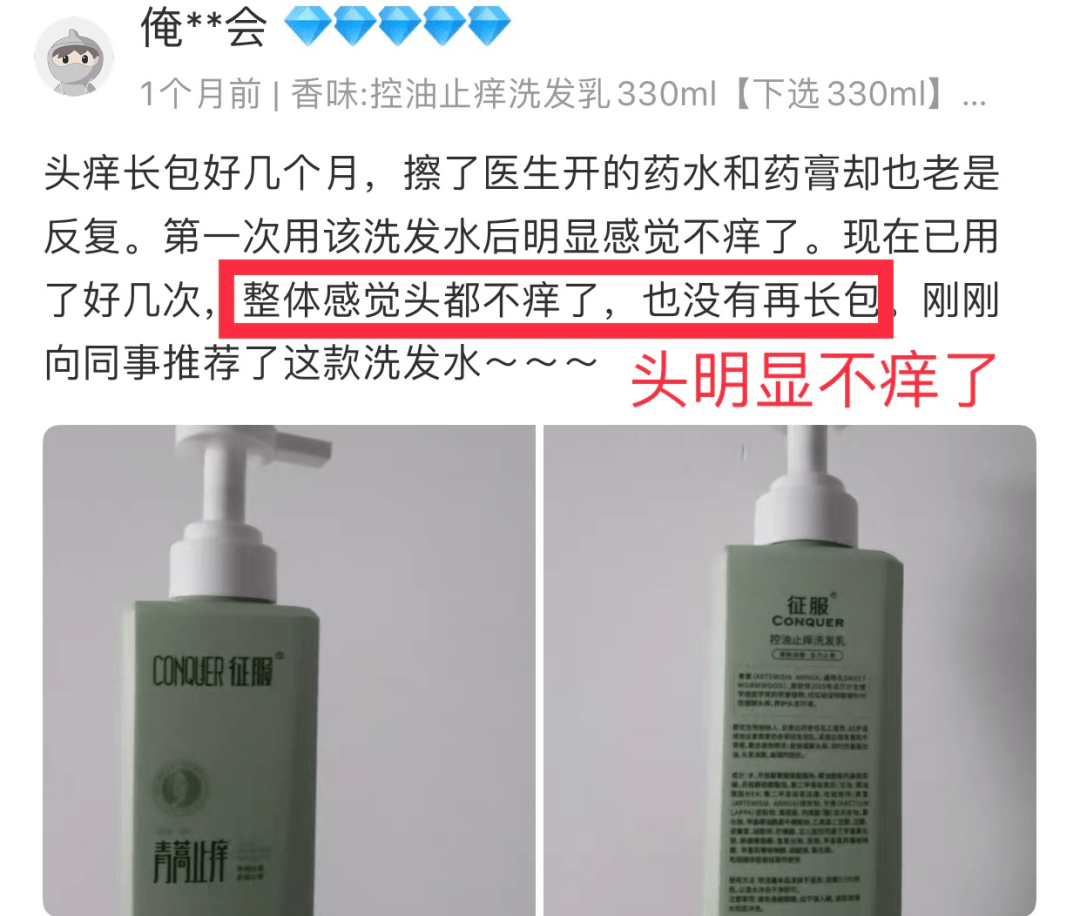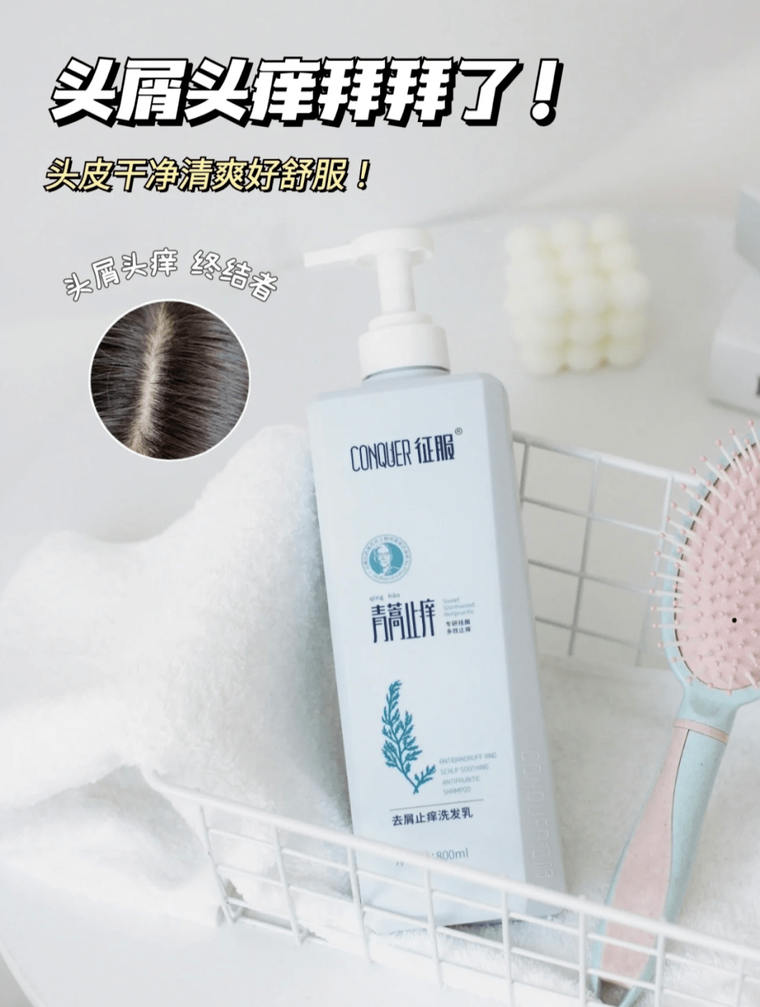 「我太愛征服青蒿洗發水了,頭皮清清爽爽的,不會癢到撓頭,掉發感覺都變少了~」