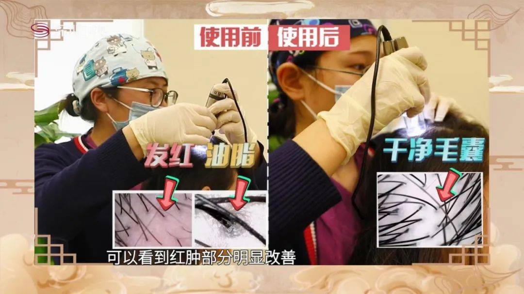 在《辣媽學院》中,還專門做了使用對比,在頭皮檢測儀器下,發紅毛囊明顯變干淨。