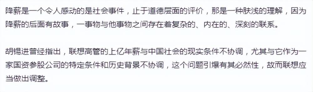 但現在聯想變成民營企業,怎麼變成的,當初股改的時候發生了什麼,以及聯想所處的時代環境都令人產生遐想。特定問題之下,聯想為了協調,最終選擇用降薪的方式作為調整。