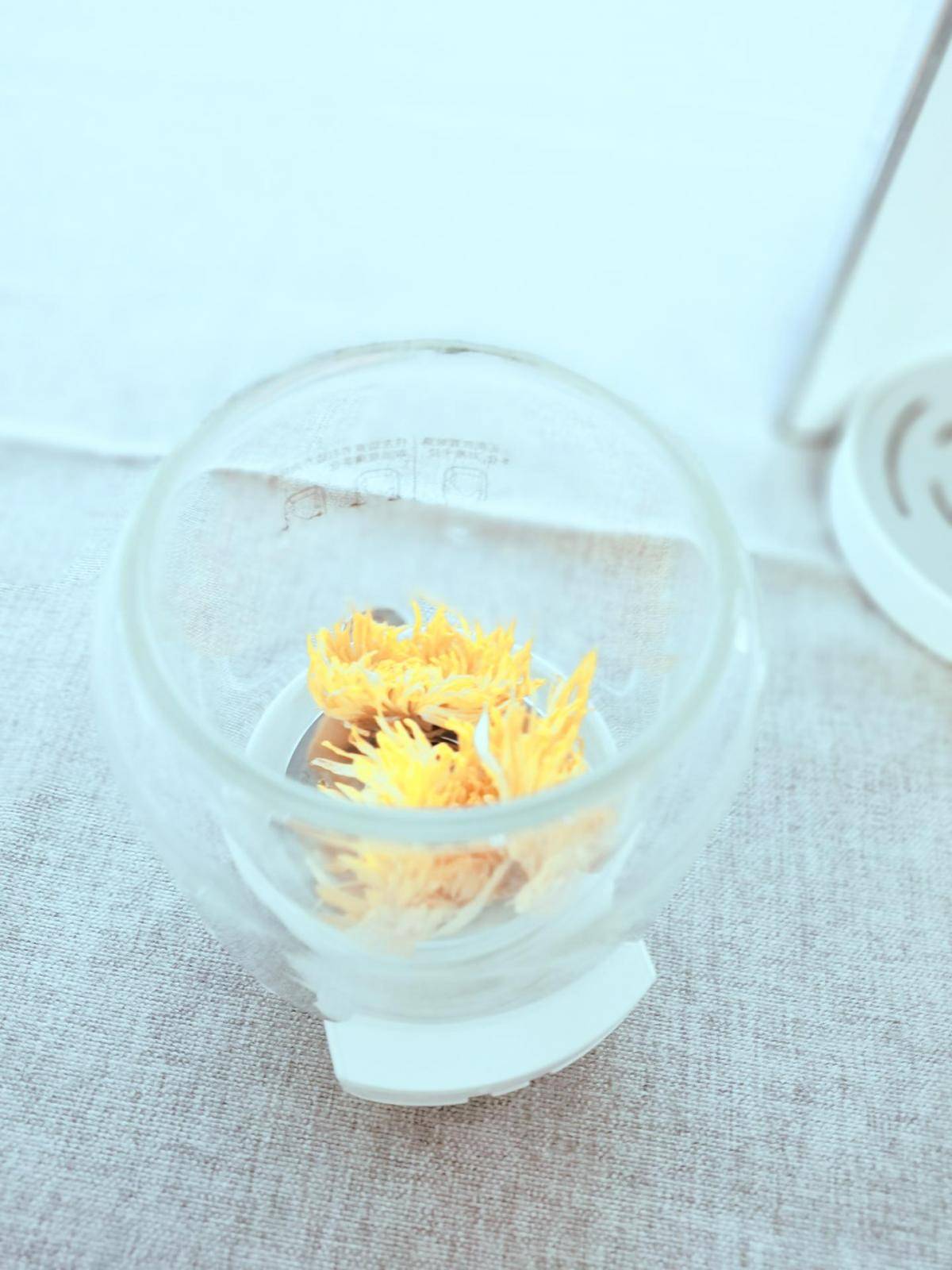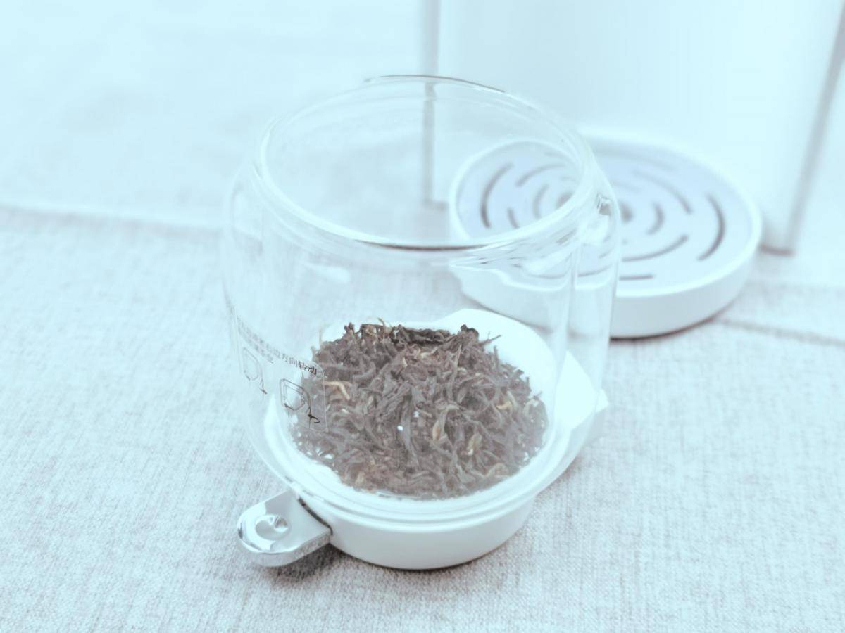 一壺菊花茶解秋燥。泡菊花茶自然要啟動智能泡茶模式,這個模式的重點在於玻璃茶倉,往茶倉里倒入適量的菊花茶葉,把它裝在茶飲機上層部位,因為是磁吸設計的,所以很好安裝。