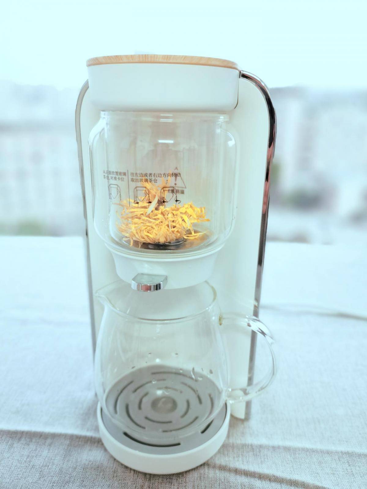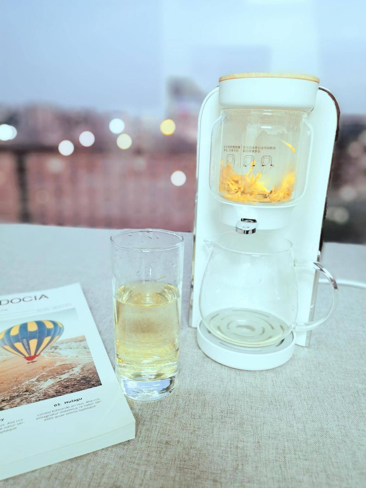 平時我會用這台茶飲機自製檸檬水喝,家裡來客人了就安排一壺紅茶,特別是為了解秋燥,經常泡菊花茶喝,別提有多愜意了。