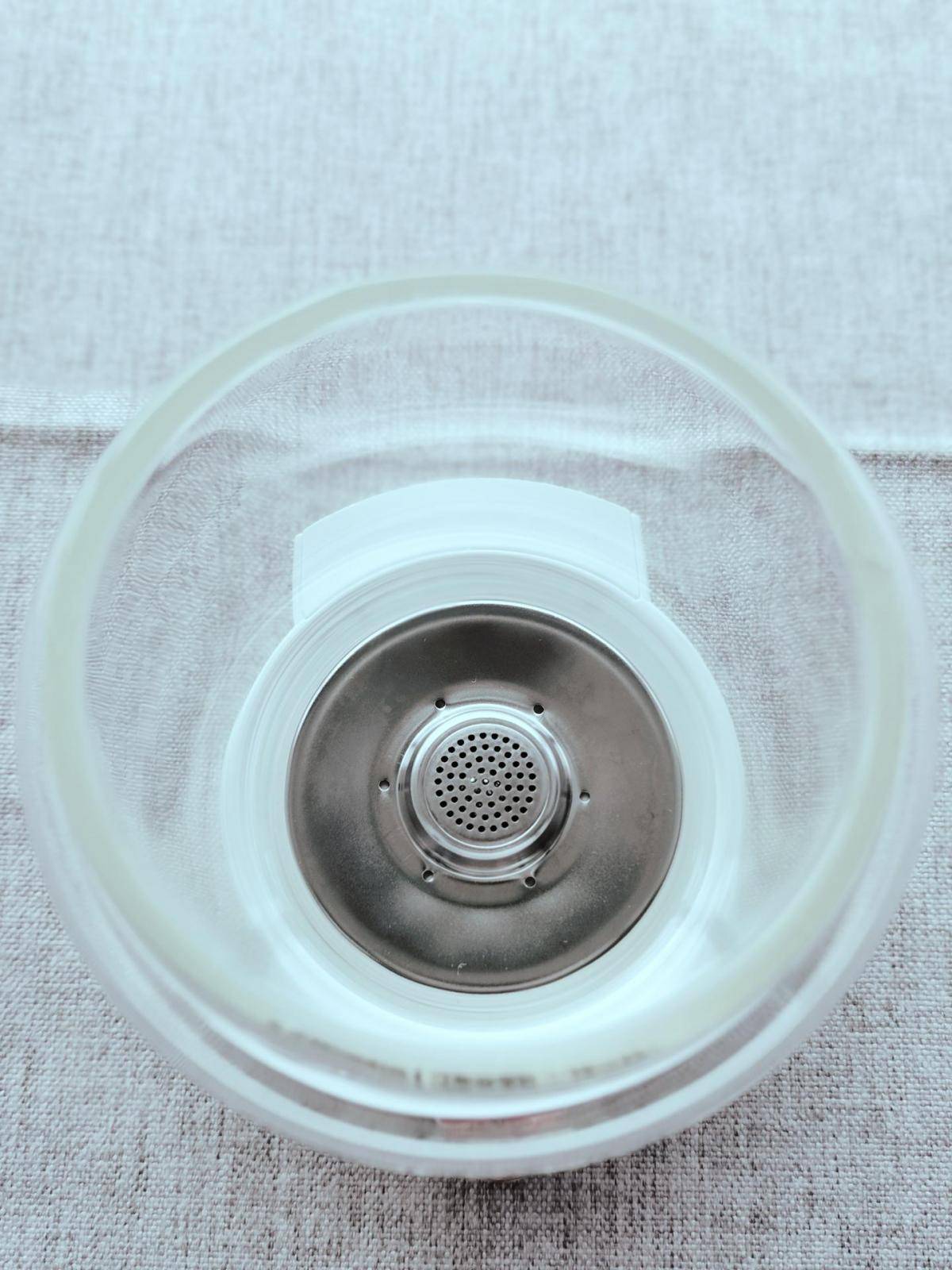 然後它這個機器最最重要的是這個配件,玻璃茶倉,只要裝上這個茶倉,它就從一台飲水機變成一台泡茶機。茶倉用的是高硼矽玻璃,承接熱水不易破裂,裡面還有濾網,使用的是食品級304不銹鋼,能幫住分離茶渣和茶湯,並過濾出口感細膩香醇的好茶,這點我後面還會詳細說明的。