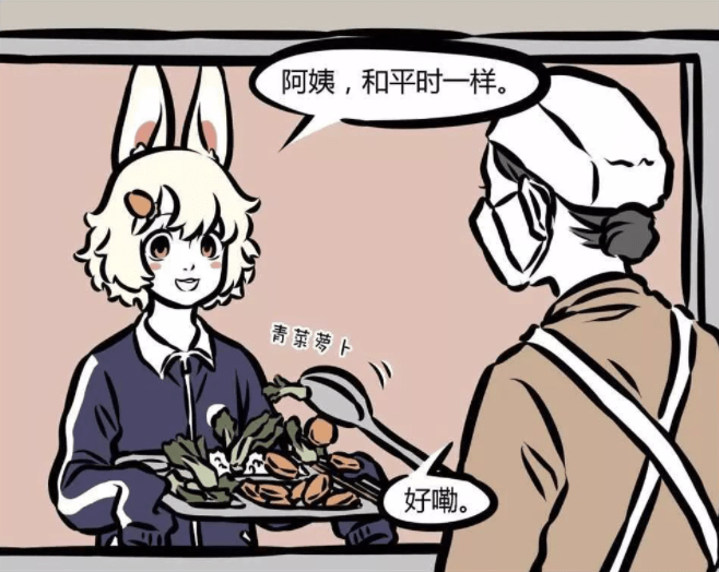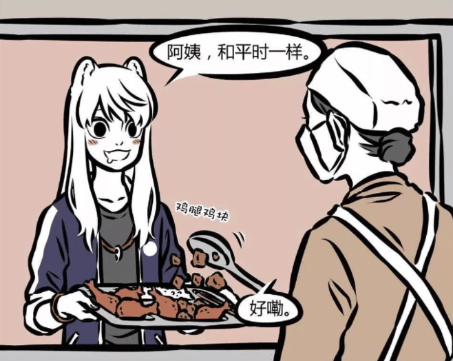 另一方面呢這阿姨也確實是個好人,沒有手抖的毛病,打飯那是穩得很,你想,如果她給得不夠一勺子就兩三塊肉,肯定少不了被大家腹誹兩句,如果給得比較足,那大家肯定發自內心感謝,這麼多有道行的神仙妖怪們一人謝一句一人祝福一句的,別的不說幸運屬性都提高不少,感覺這長命百歲的概率真的挺大呀。