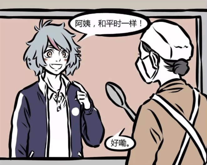 這是《非人哉》漫畫第330話的故事,講的是眾人去食堂吃飯的場景,小玉吃素嘛,結果打飯阿姨給打了滿滿一盤,這都還好,大家看看九月這個。
