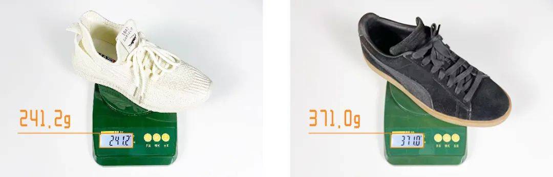 這款飛織跑鞋可以做得有多輕?我們用克重稱做個對比。